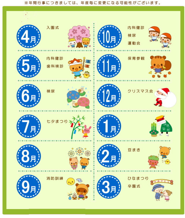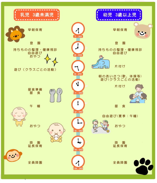 ・ 保育時間は7時30分~18時30分までです。(必要な方のみ土曜日も同様)